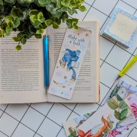 Bookmark size: 17,5 cm x 6 cm, rounded corners.