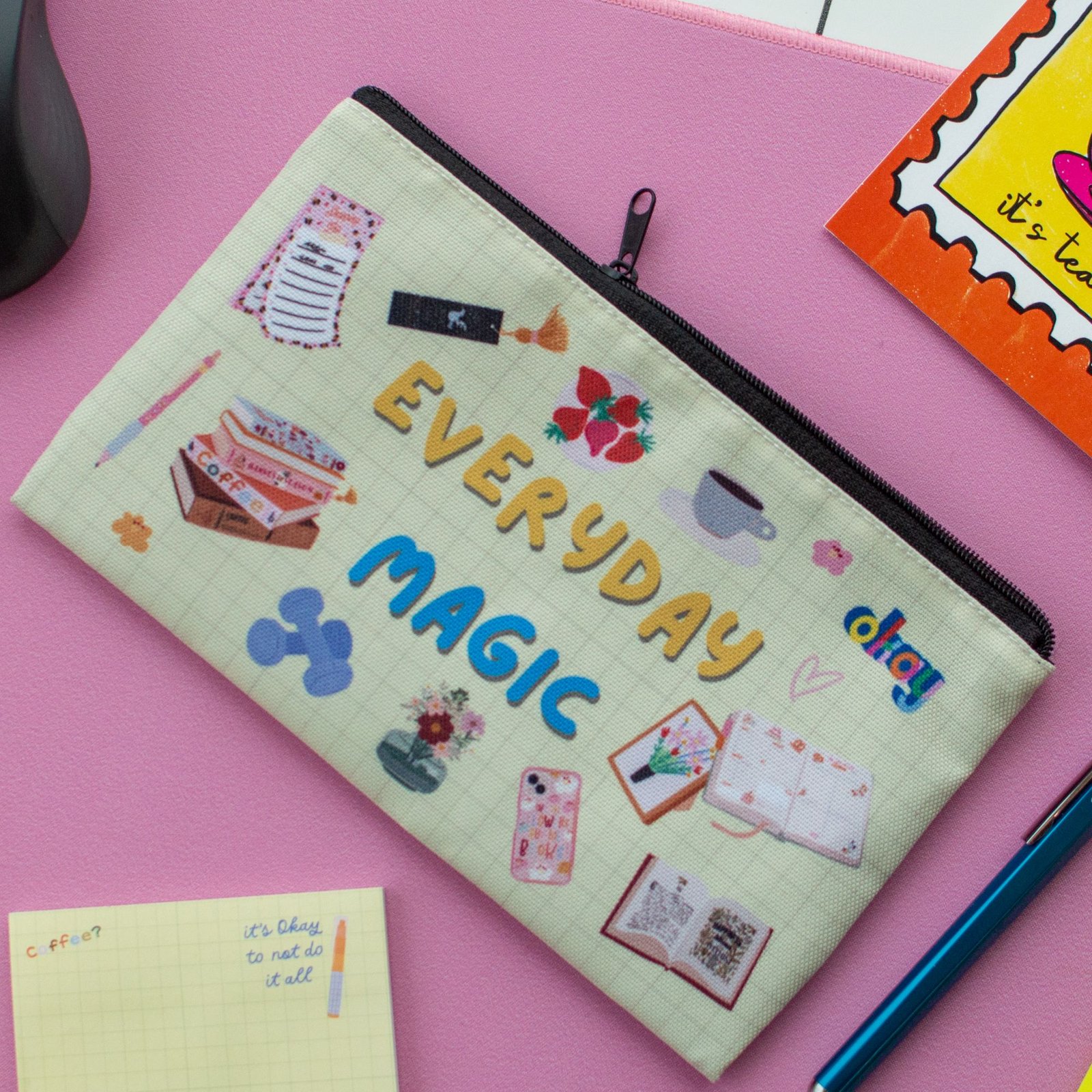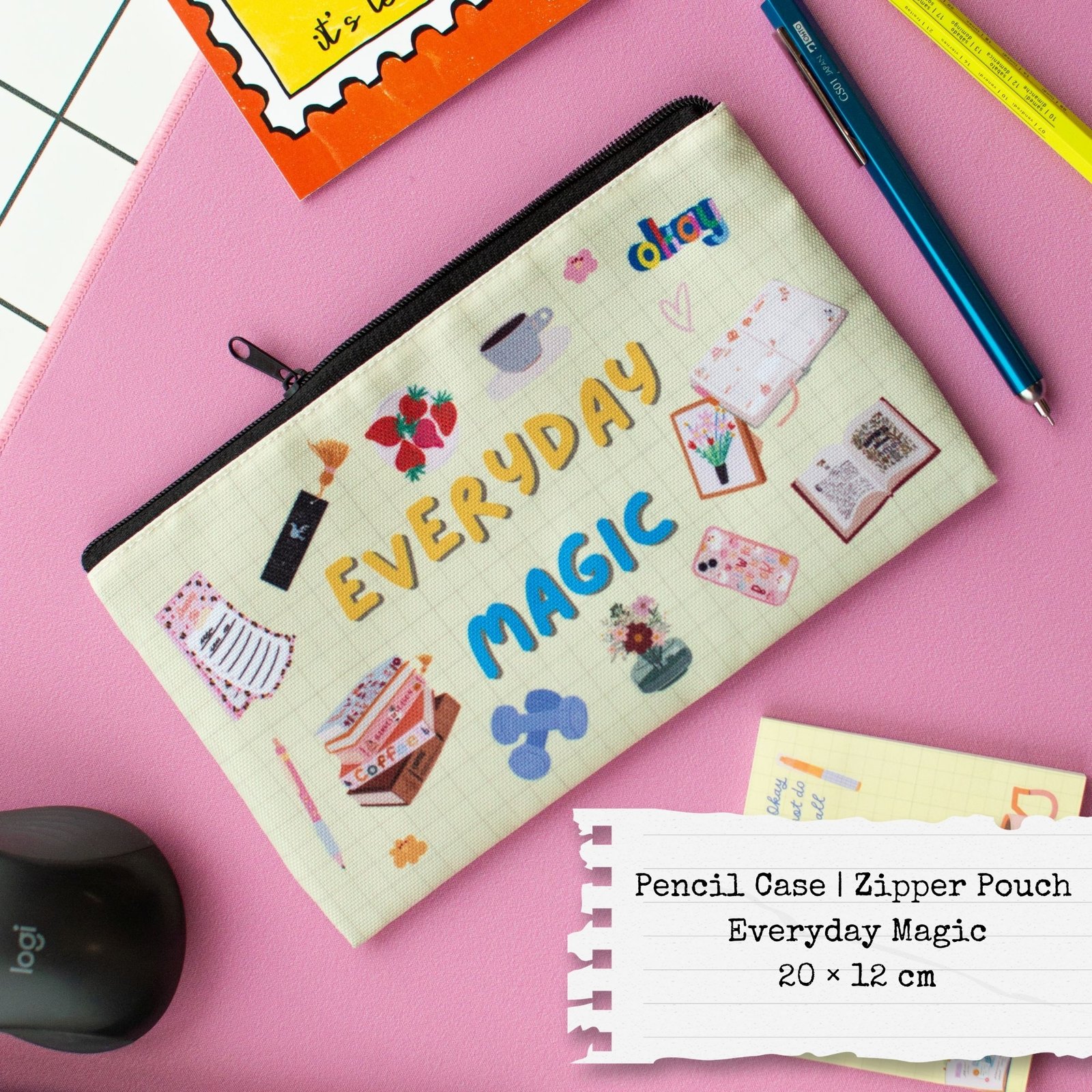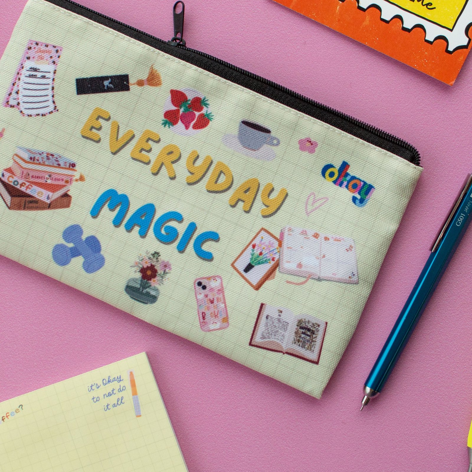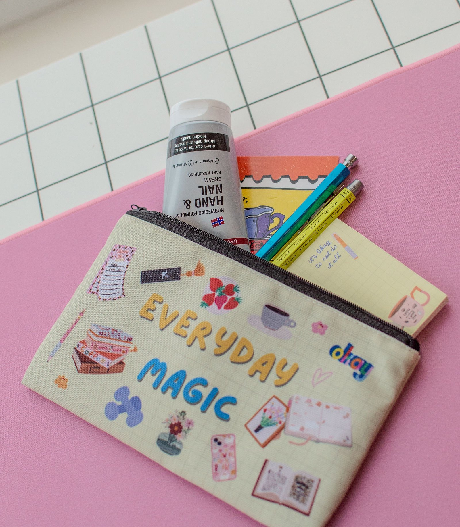 The Everyday Magic pencil case is a small but reliable helper for keeping your everyday essentials together. It holds pens, highlighters, sticky notes, washi samples, bookmarks, charging cables or any small items that tend to disappear when you need them most.
