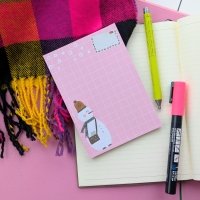 A cheerful little helper for your winter notes! This pink memo pad features a post-snowman carrying Santa Mail, ready to deliver your to-do lists, reminders, or cozy thoughts.