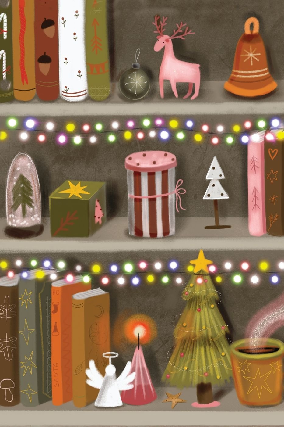 This postcard feels like a quiet December evening, perfect for anyone who loves the comforting chaos of Christmas preparations, the glow of fairy lights, and a good book within reach.
