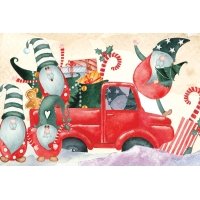 The Christmas crew is on the move! A bright red truck packed with gifts, candy canes, and cheerful gnomes is ready to spread joy wherever the road takes them.