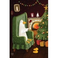 Soft firelight, a comfy chair, and a good book – that’s all this goose needs for a perfect Christmas evening. The tree sparkles, the slippers wait nearby, and peace fills the whole cozy room.