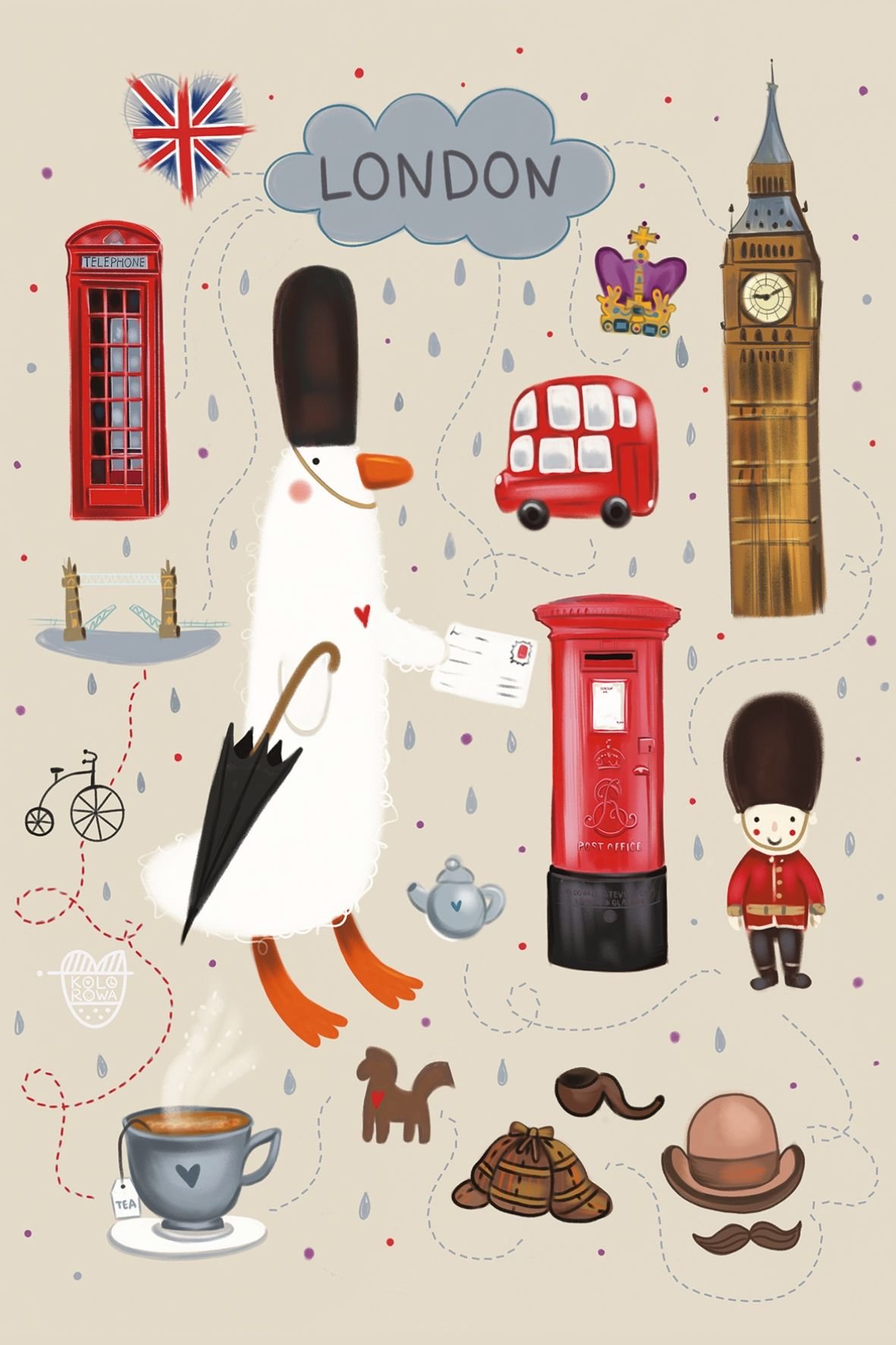 This Goose on Tour postcard shows the travelling goose exploring London with recognizable city elements in the background. A playful illustrated design for Postcrossing profiles that enjoy travel, country themes, and character-based series. Part of the growing Goose on Tour collection.