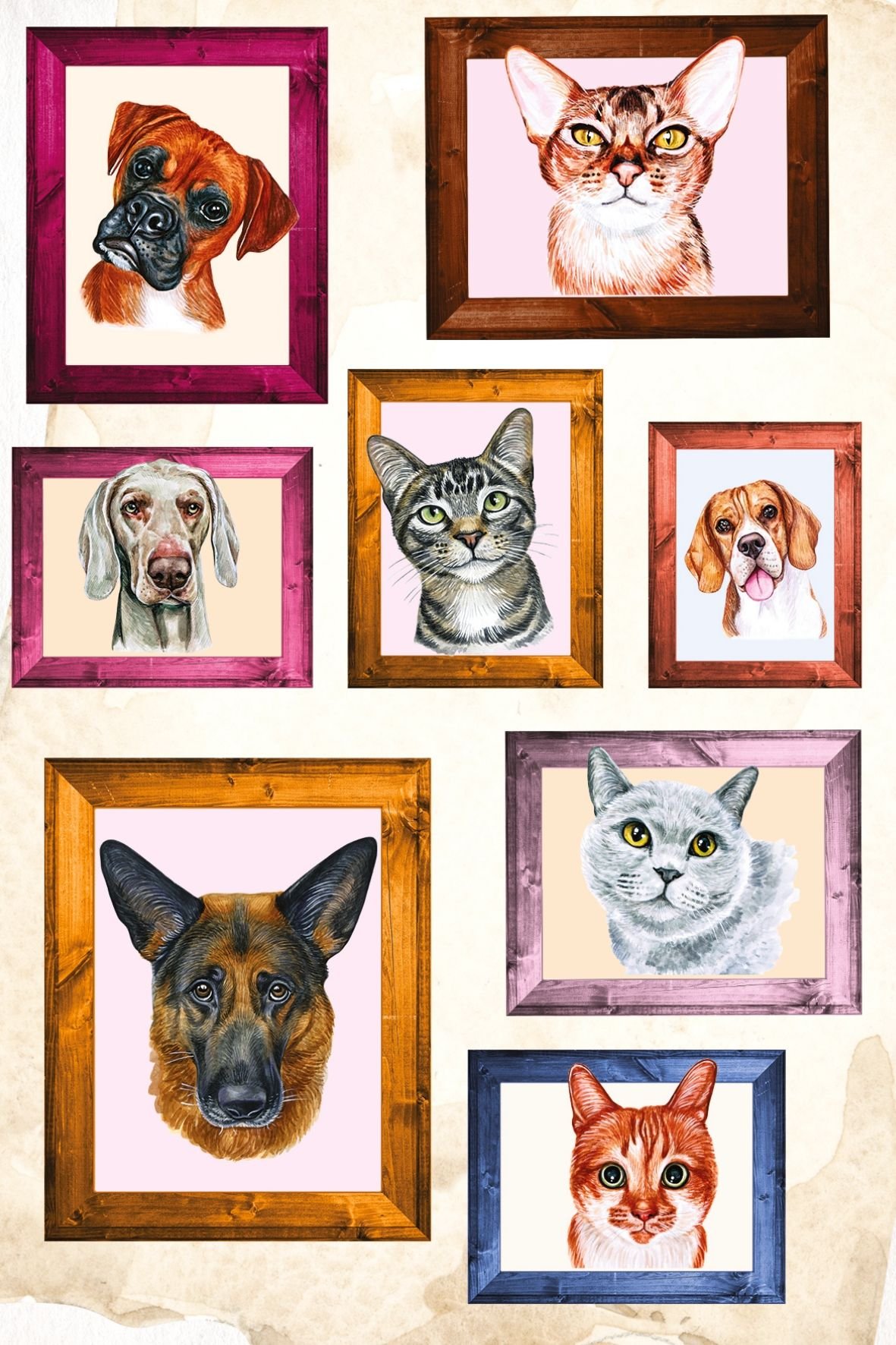 A wall full of personalities, each with their own story. Different animals, different expressions, each framed like they matter. It’s slightly playful, slightly nostalgic, and very easy to connect with.