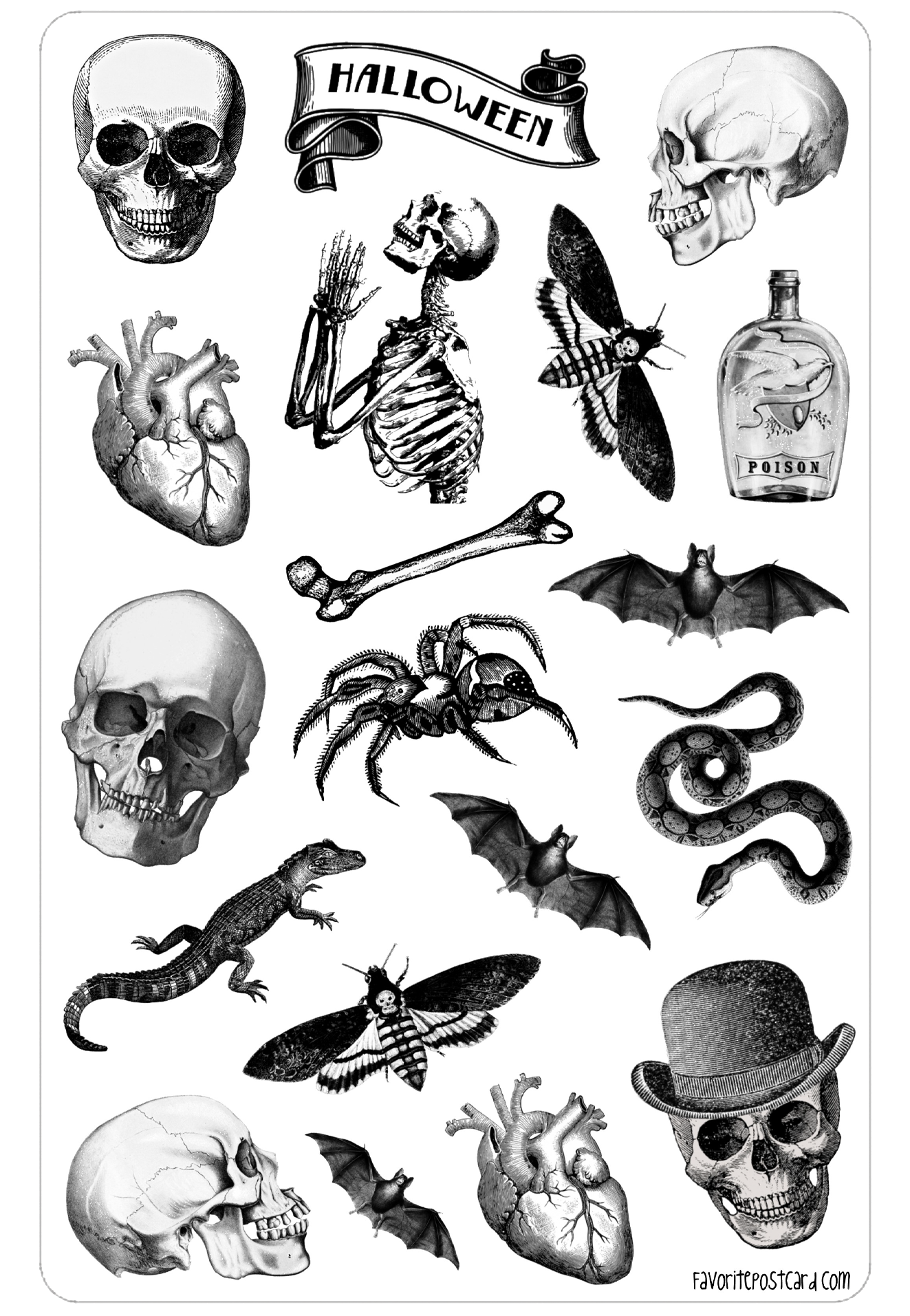 Creepy skulls, bones, bats, and vintage anatomical drawings – this sheet brings an old-school Halloween vibe to your letters, crafts, and journals. Perfect if you like your spooky with a touch of gothic charm.