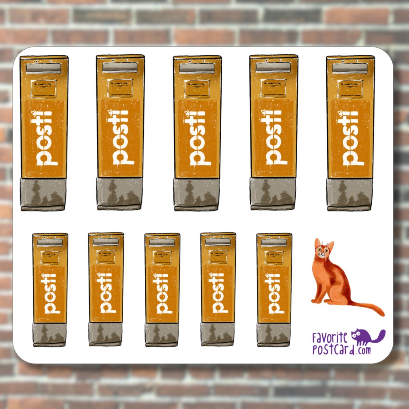 This sticker sheet shows the Finnish mailbox illustration from the World Mail Greetings collection.