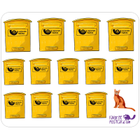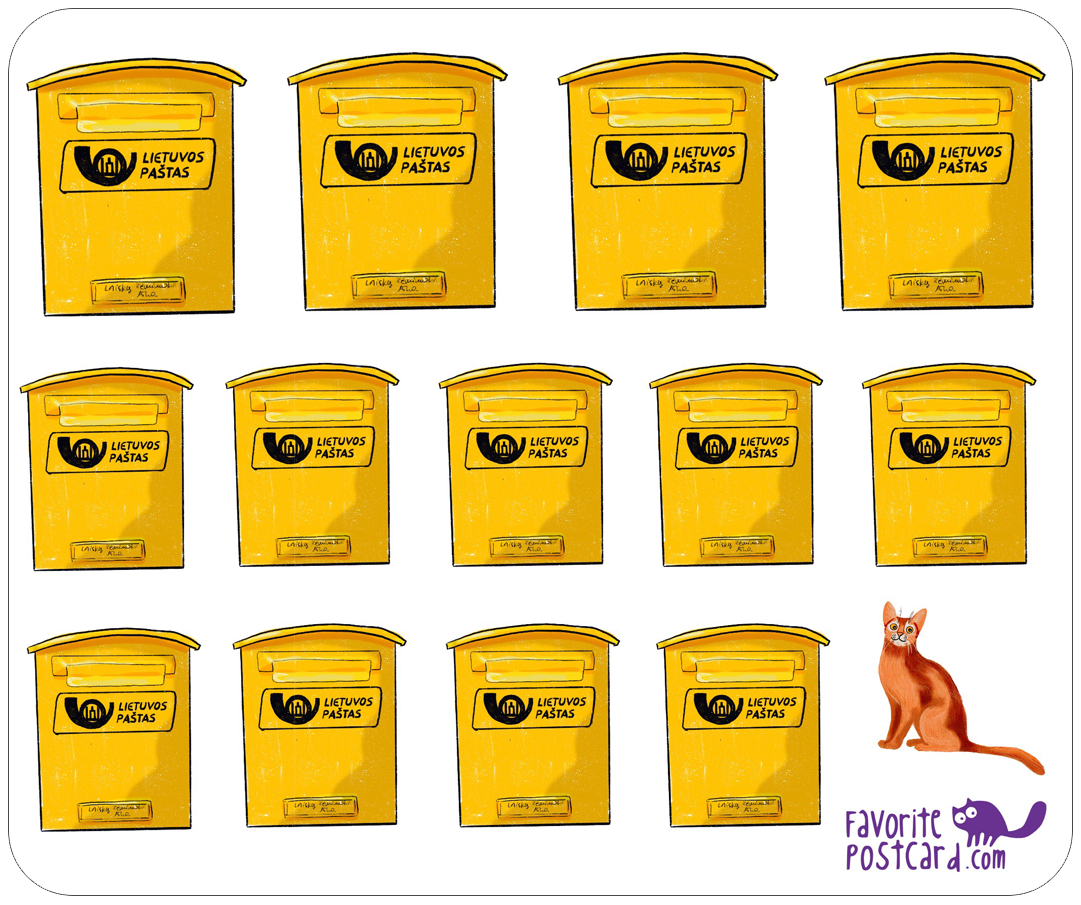 This sticker sheet features the Lithuanian mailbox illustration from the World Mail Greetings collection.