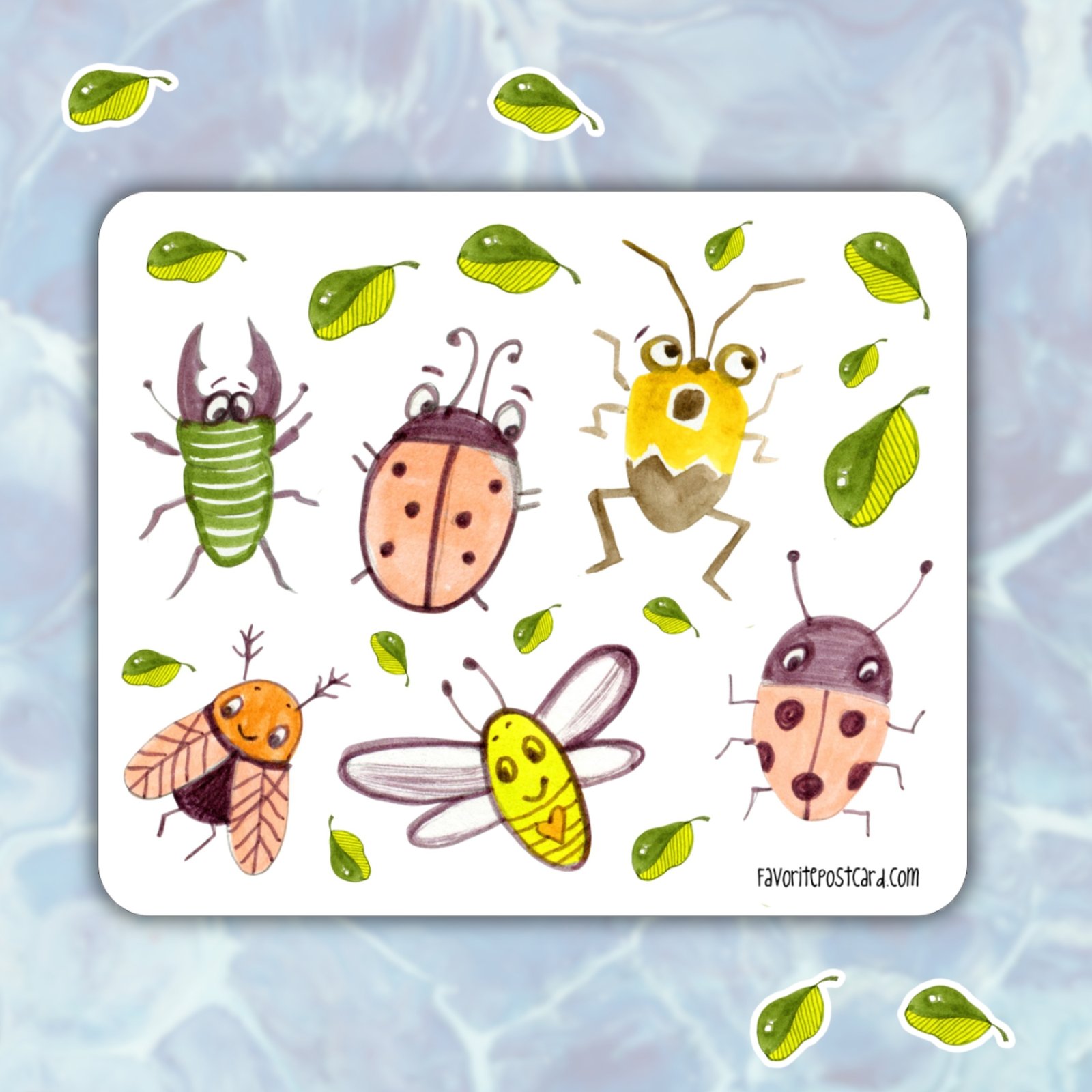 They work especially well on botanical or forest postcards. One bug near the stamp. A small leaf detail next to the address. It instantly feels more alive.