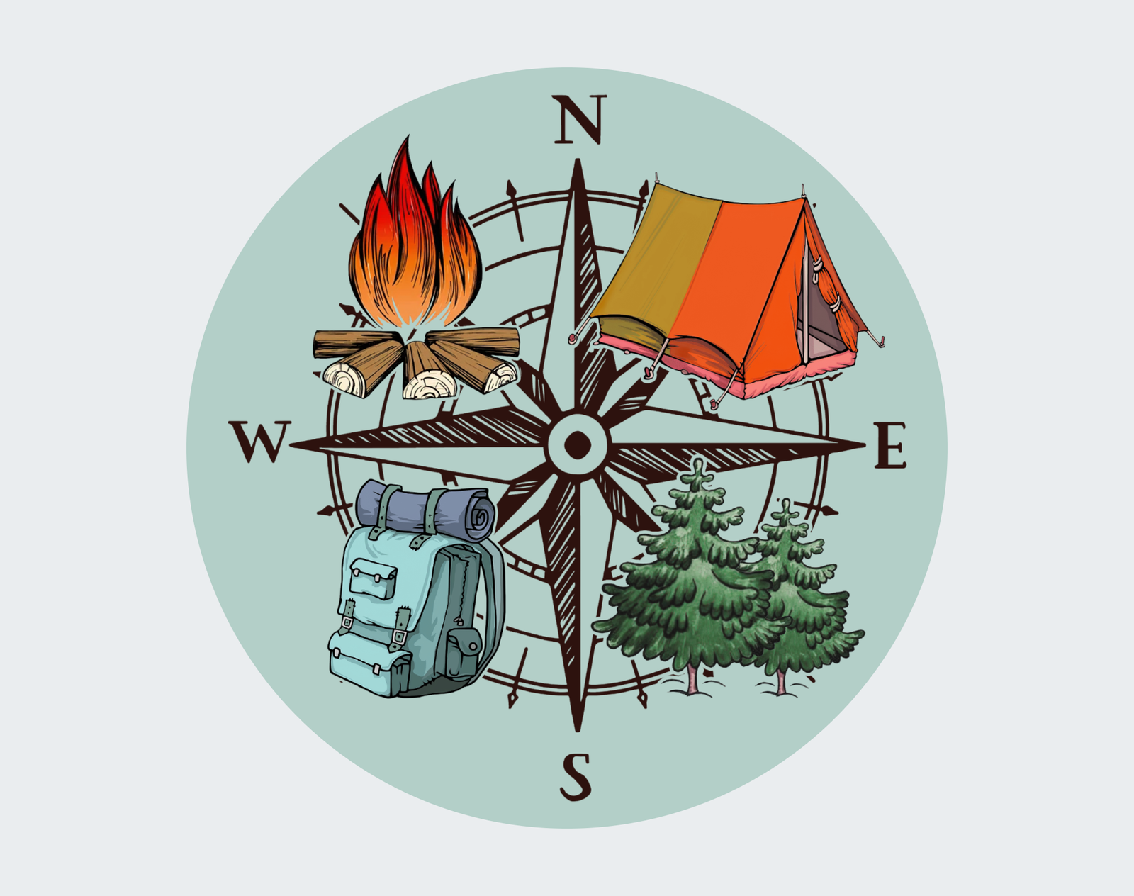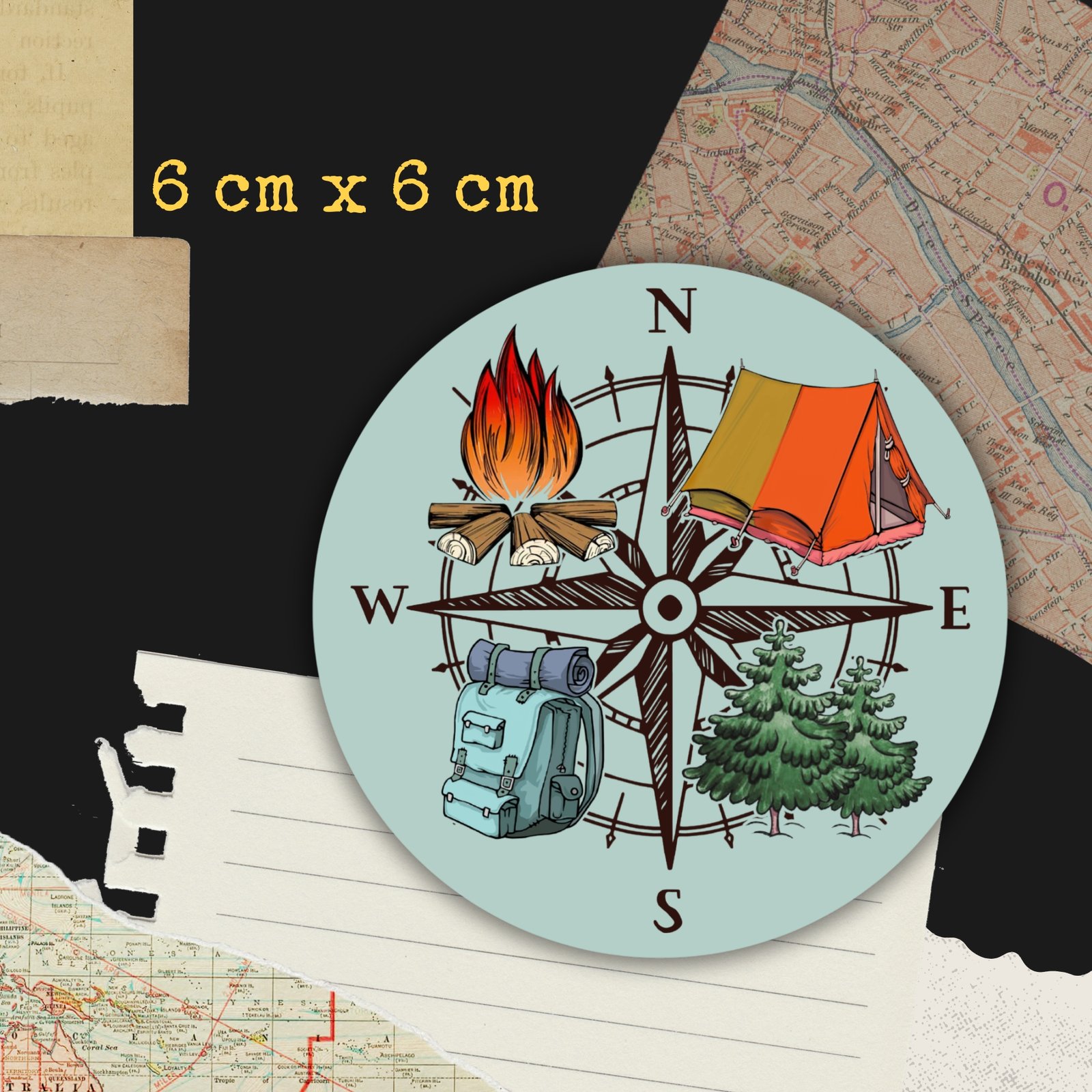 This sticker won’t tell you where to go, but it’ll remind you what to pack: fire, trees, tent, and some emotional baggage (aka your backpack).